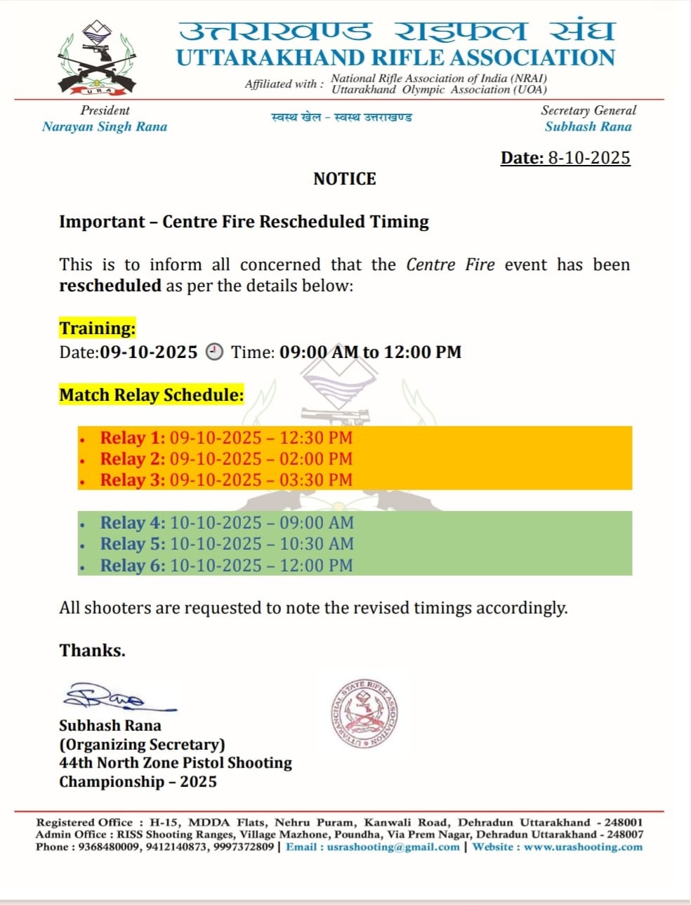 44TH NORTH ZONE SHOOTING CHAMPIONSHIP 2025 (PISTOL)-NOTICE